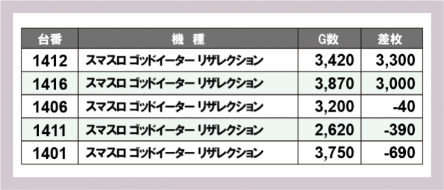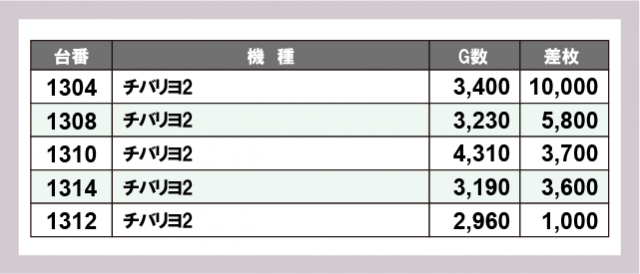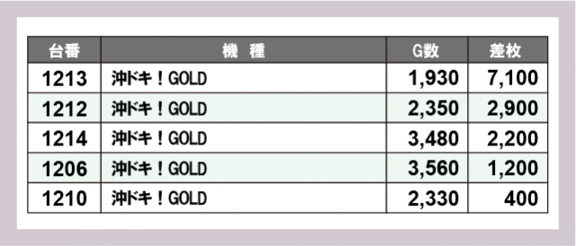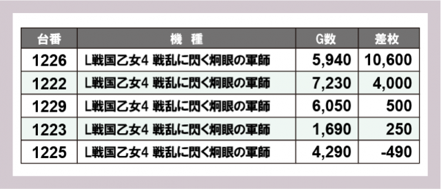※差枚数順に掲載しています