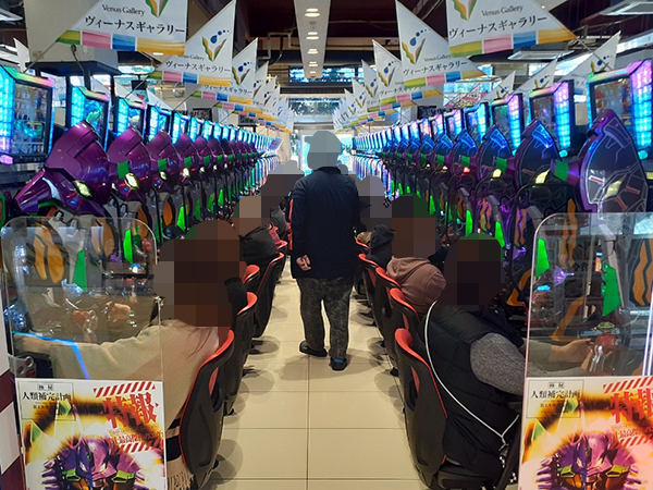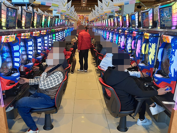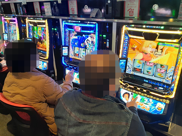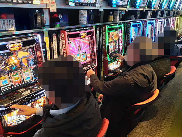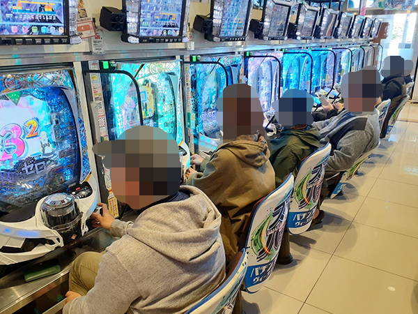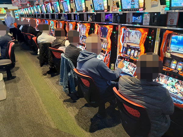 取材時は既に多くのプレイヤーが集結し、パチンコ・パチスロを問わずにぎやかな状況となっていた。