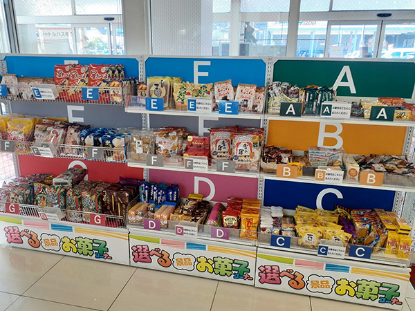 景品コーナーには多彩なお菓子が並んでおり、プレイヤーたちの興味を引いていた。