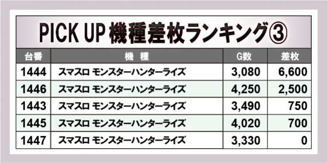 優秀機種として名を連ねた5機種は、いずれも4桁プラス差枚数を多数築いている。可能性を秘めたエリアであり、それらをしっかりとファンが嗅ぎ取っている事実は、何よりも好感を覚えるポイントだろう。