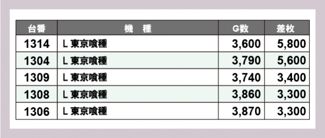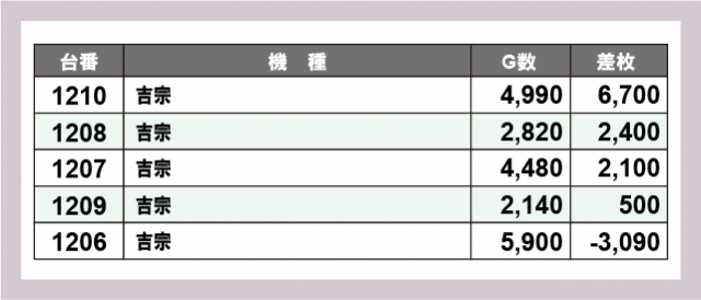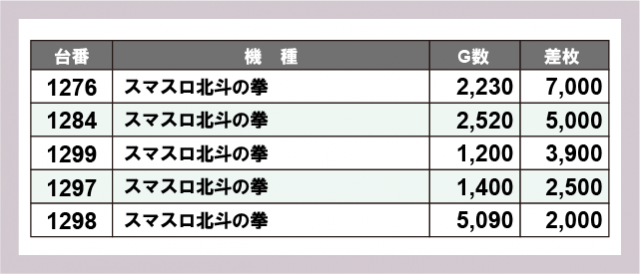 ※差枚数順に掲載しています