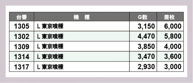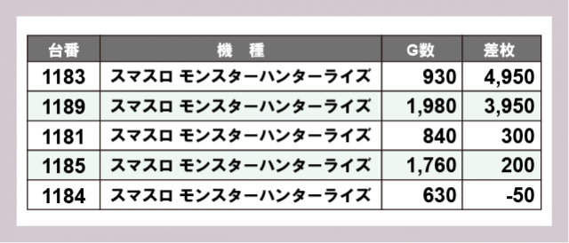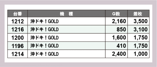 ※差枚数順に掲載しています