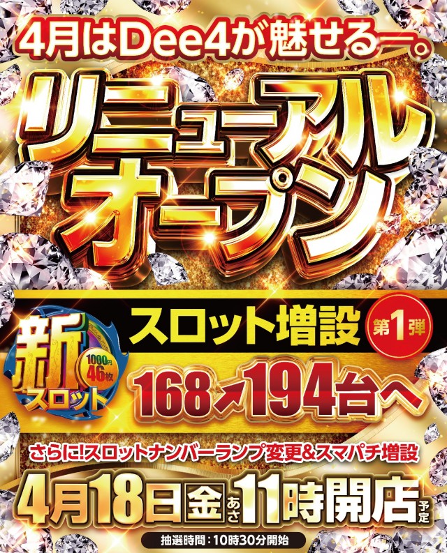◆4月18日◆リニューアル!!11時OPEN×新台入替◆