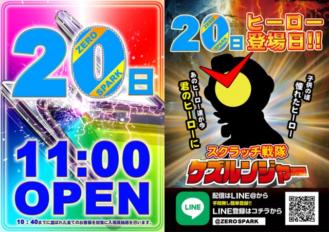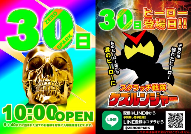 9月10日 ZERO SPARK 新台入替11時開店!!