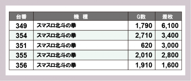 ※差枚数順に掲載しています