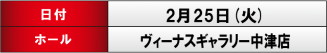 2月25日、『ヴィーナスギャラリー中津店』にて昨日に続き、「キングフッキー君 独占取材」が連続実施された。前日は大台突破台が複数発生する好成績を収めた同店だったが、果たして今回はどのような1日になったのか…さっそく以下から出玉詳細データとともに、当日の店内の様子に迫っていこう!