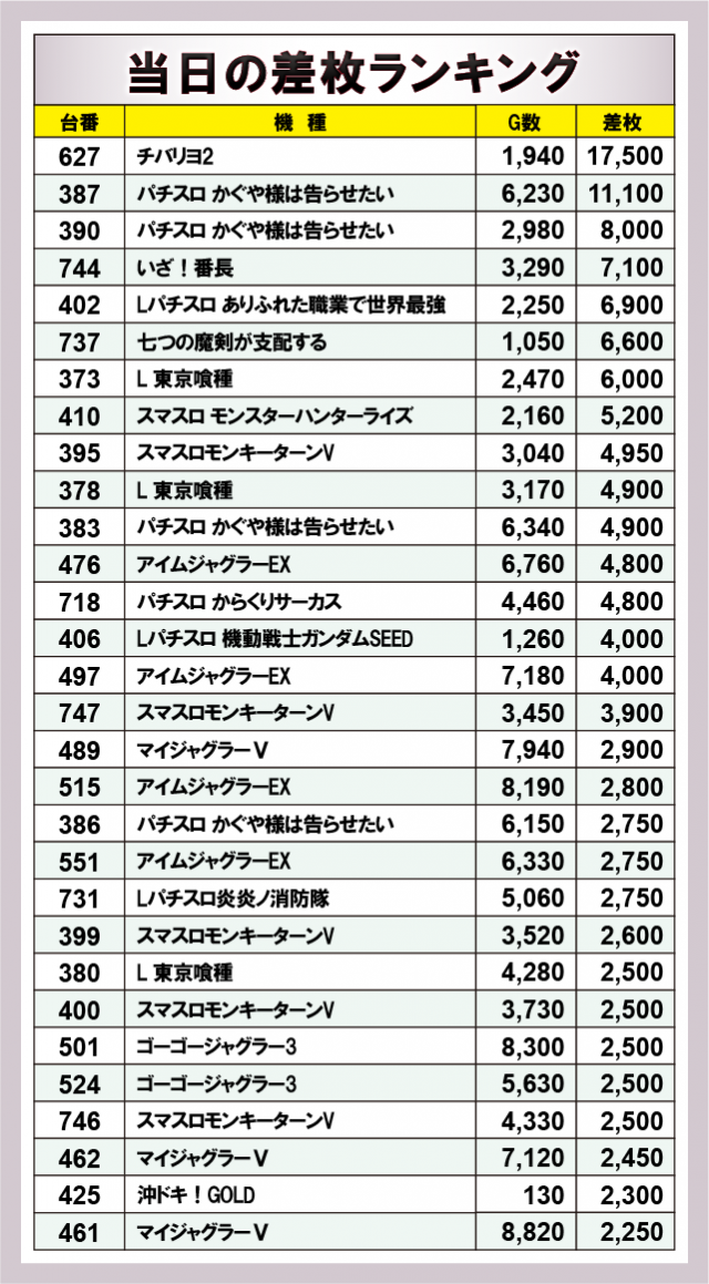 ※記事内の差枚表記はぱちタウン独自調査に基づくものです。ご了承ください。