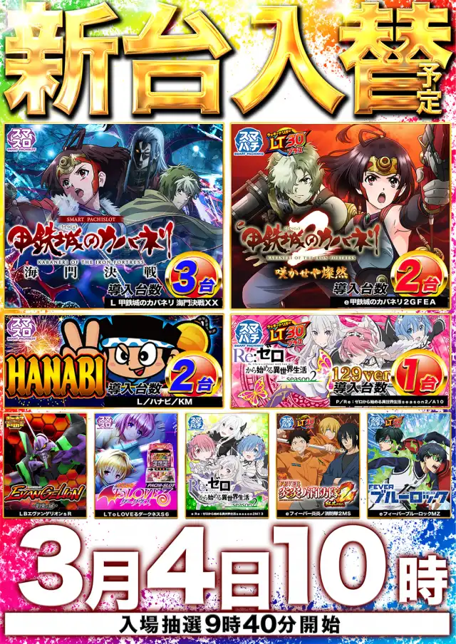 3月4日(水)新台入替 10時開店‼
