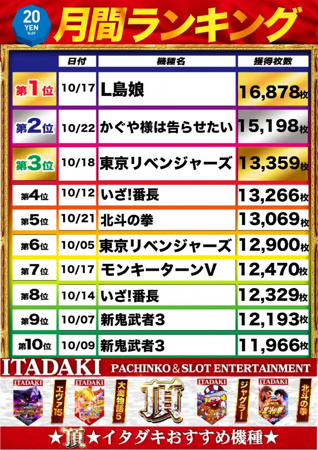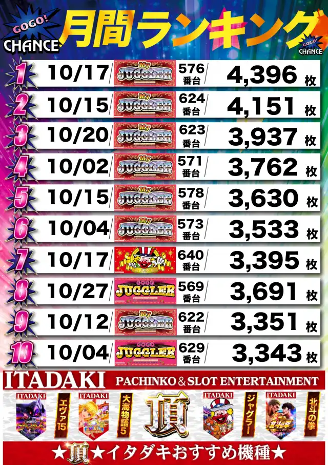 2025/10/11 10:00〜22:40 PR ![マルハン中津店 2025/10/11/(土)の来店イベントレポート「3×3STAR取材」]()  「マルハン中津店」にて3×3STAR取材を実施!!ユーザーから支持を受ける機種を中心に見事な盛り上がりとなり、訪れたプレイヤーで大賑わいとなっていた!!詳細は下記にて是非チェックしてほしい!!