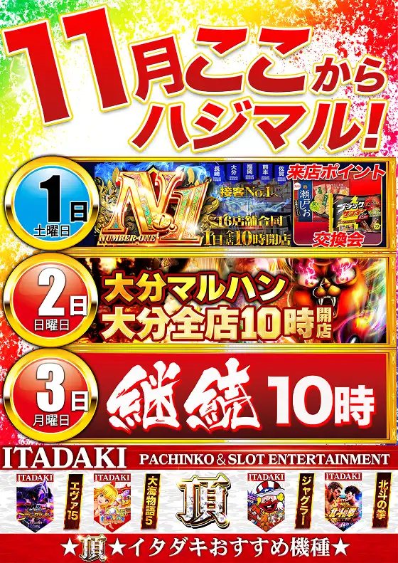 2025/10/3111月1日九州マルハン16店舗合同 10時開店