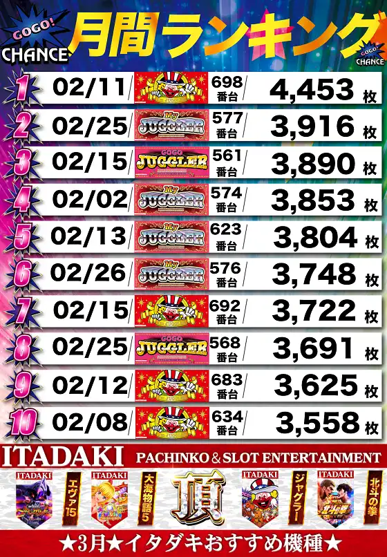 今まで見たことのない景色を。2月21日(土) マルハン中津店にて、DMMぱちタウンの「ぱちタウン取材」を実施。その結果の中から、ぱちタウンが注目すべきポイントを厳選してユーザーにお届け!プレイヤーが楽しんだ一日を下記データにて振り返ってみて欲…