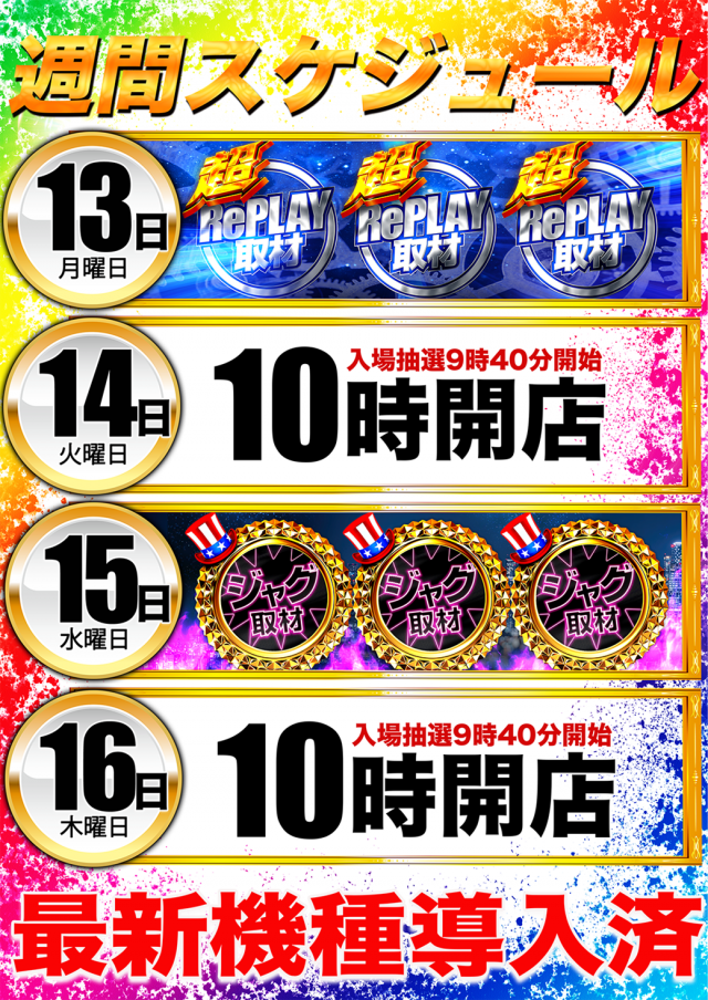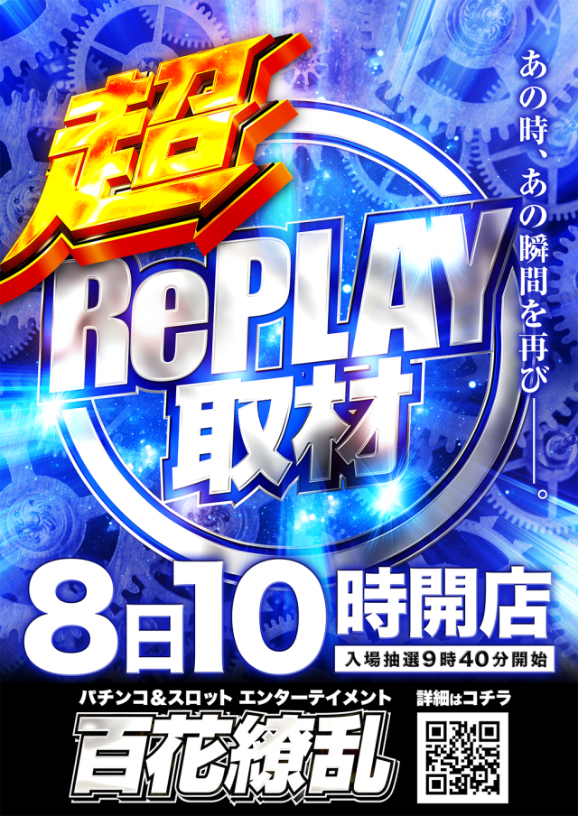 8日 超リプレイ取材&最新台導入済!10時開店!!