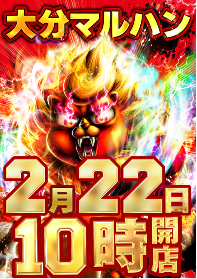 2月22日(日)大分マルハン全店 朝10時開店‼