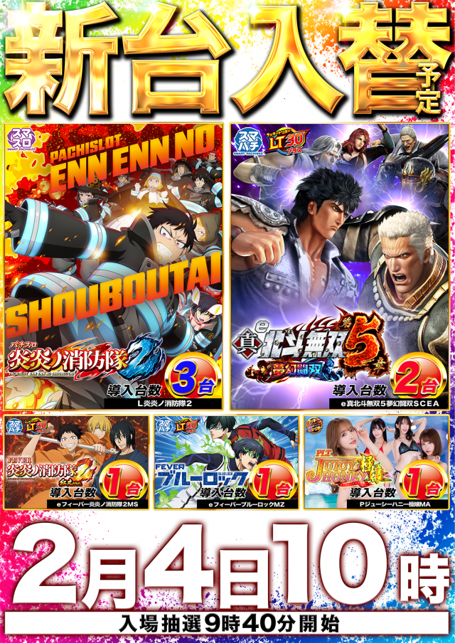 2月4日(水)新台入替 10時開店‼