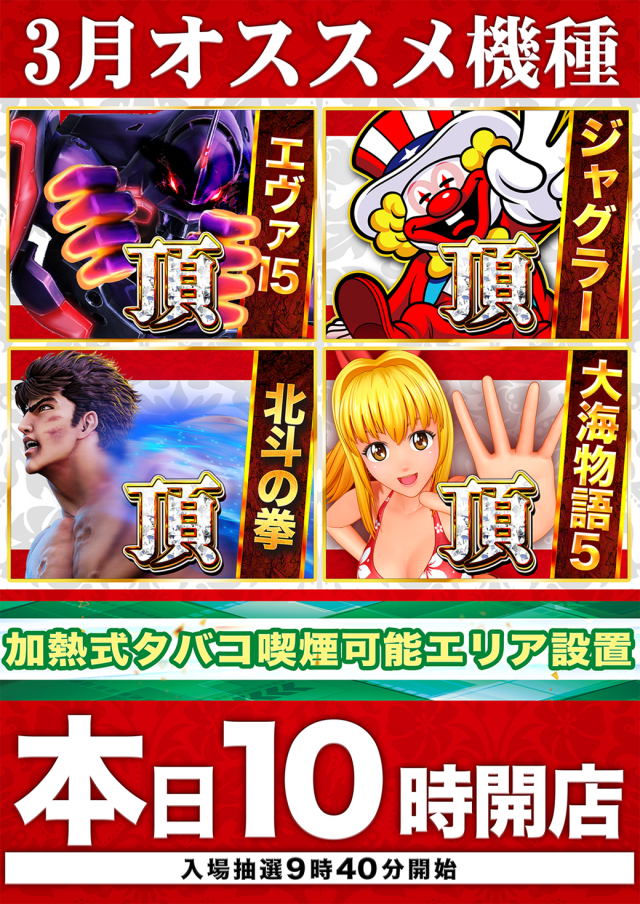3月12日(木) 大分マルハン全店 10時開店‼