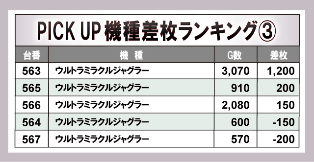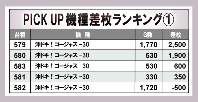 優秀機種として取り上げた4機種はしっかりとポテンシャルを解放していた様子が窺え、多くの機種でプラス差枚台の割合が高くなっていた。可能性を秘めたエリアとなっていたのは間違いなく、店内各所から熱気が放たれていた!