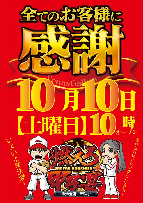 10/15 本日 新台入替! 朝10時オープン!
