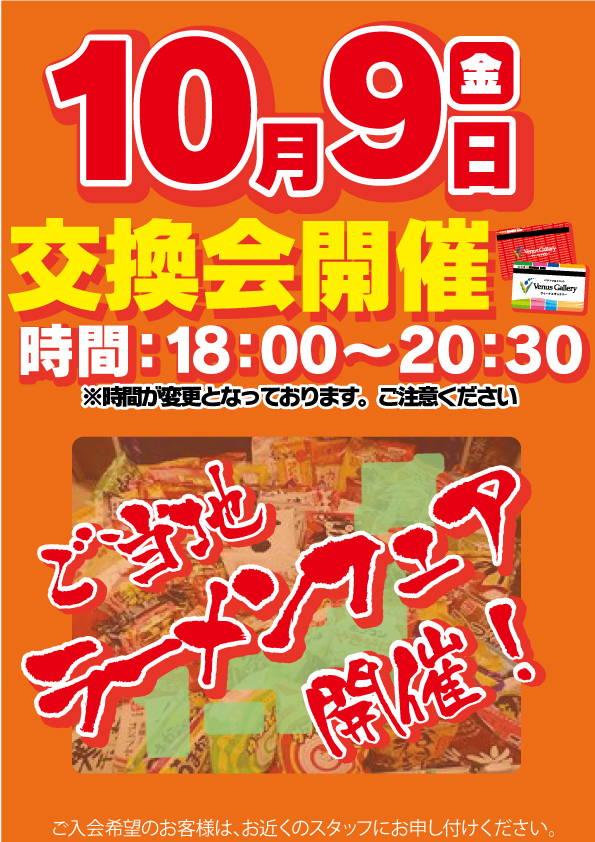 10/9 本日18時より 来店ポイント交換会 開催!!