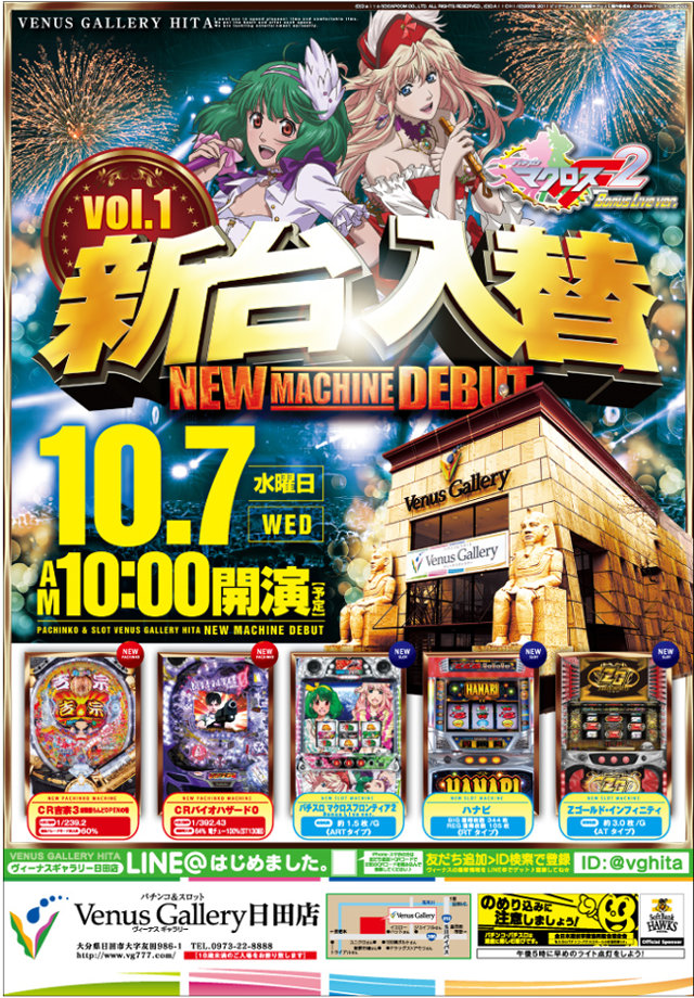 10/7 本日 新台入替 朝10時オープン!!