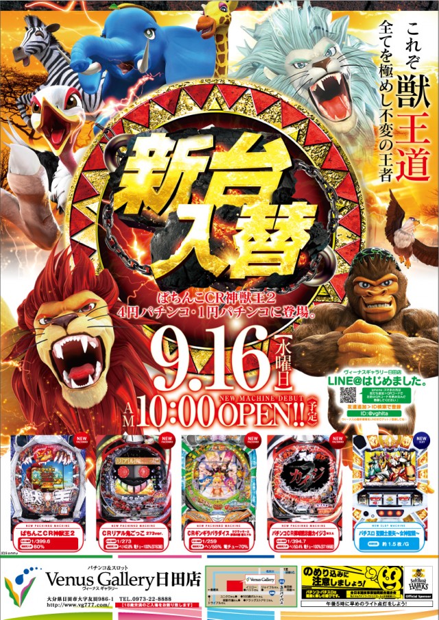 9/16 本日 新台入替! 朝10時オープン!!