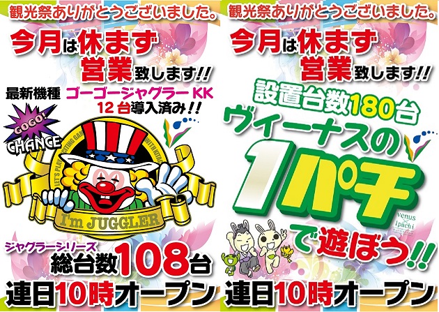 ジャグラーシリーズは日田市最多バリエーションの全6機種設置中!