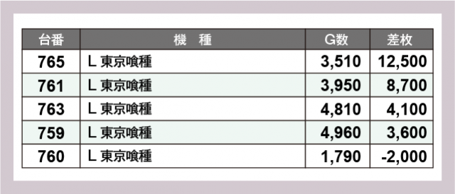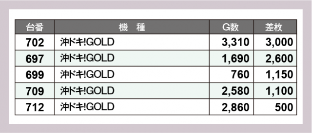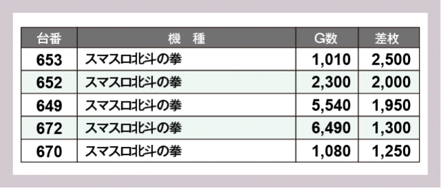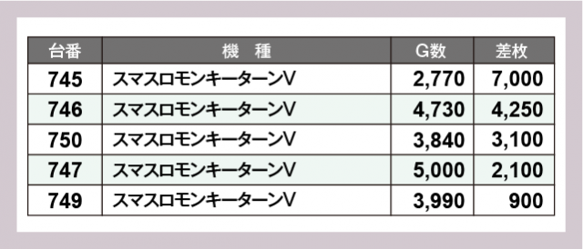 ※差枚数順に掲載しています