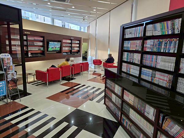 レストスペースにはたくさんの漫画本が用意されており、プレイヤーからの評価も高いように感じられた。