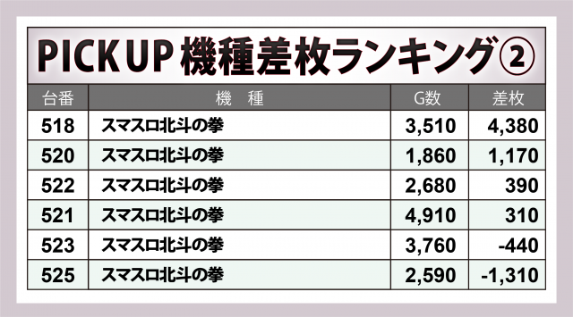 さらに『スマスロ北斗の拳』では+4,400枚弱、『押忍!番長ZERO』『マイジャグラーⅤ』『アイムジャグラーEX』にも好調台が窺えた。