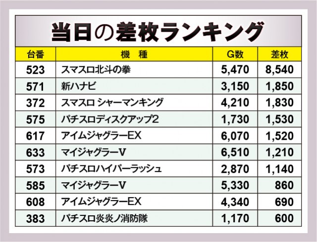 ※差枚数順に掲載しています。