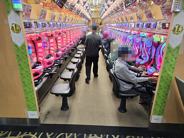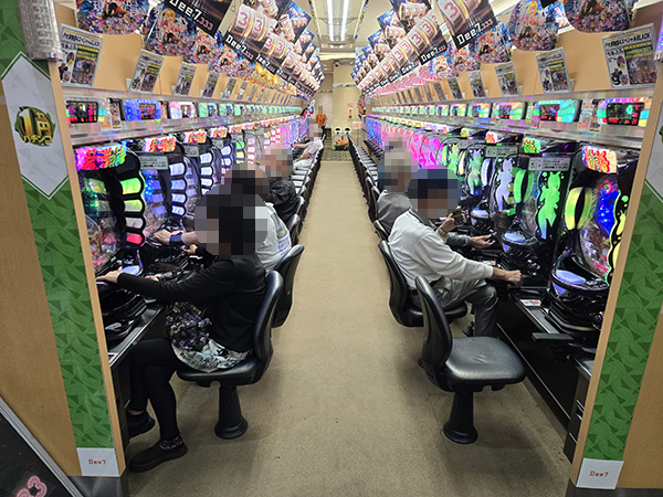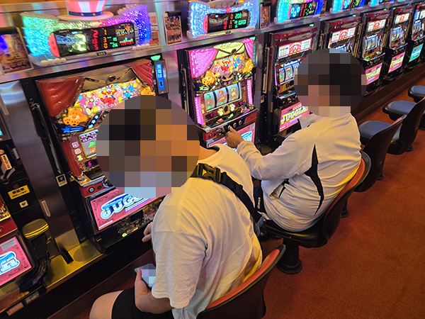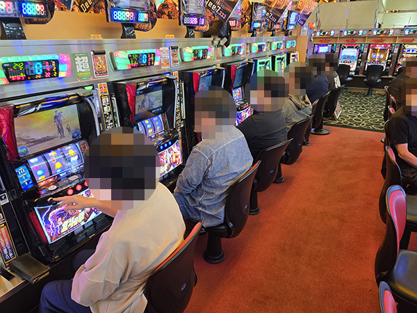 「マイジャグラーⅤ」をはじめとするジャグラーシリーズで機種のポテンシャルを引き出すプレイヤーが見受けられ、華やかな光景がそこかしこに広がっていた。