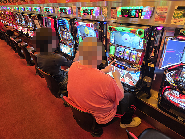 5円パチスロの様子をうかがうと、様々な機種で楽しそうにレバーを叩くプレイヤーが見受けられた。