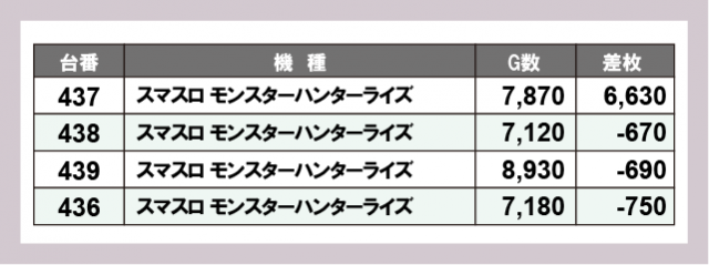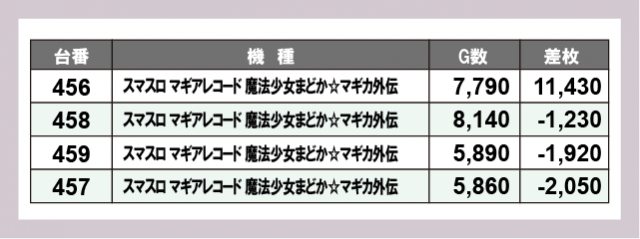 ※差枚数順に掲載しています