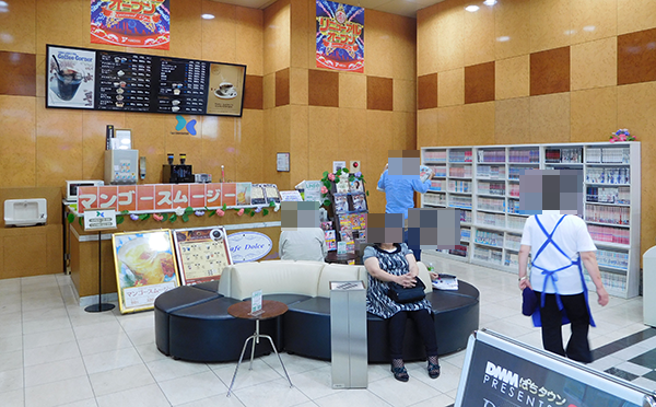 マンガなども置かれたレストスペースにはカフェもあり、ゆっくりと休憩ができるようになっている。
