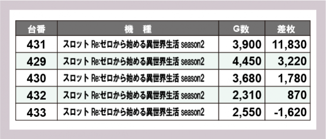 ※差枚数順に掲載しています