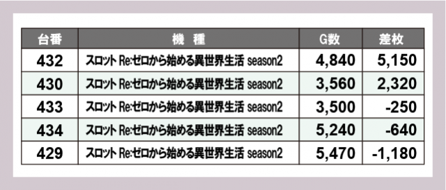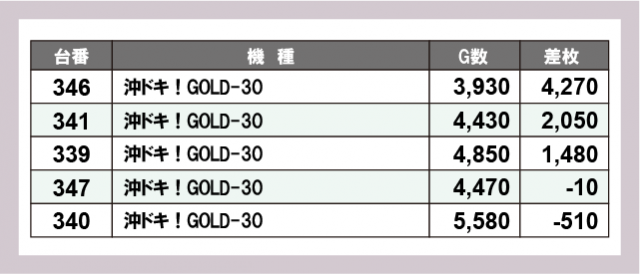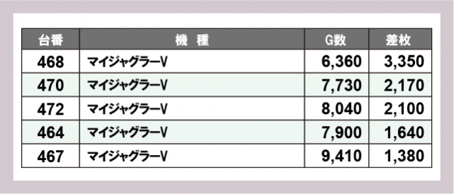 ※差枚数順に掲載しています