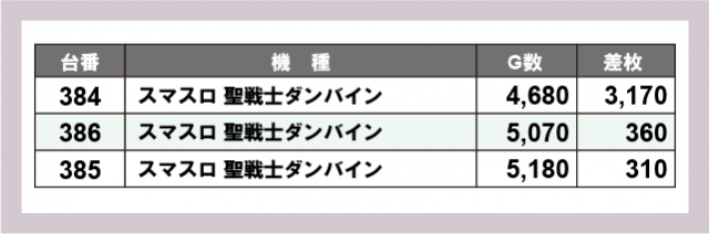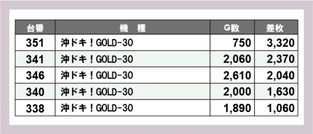 ※差枚数順に掲載しています