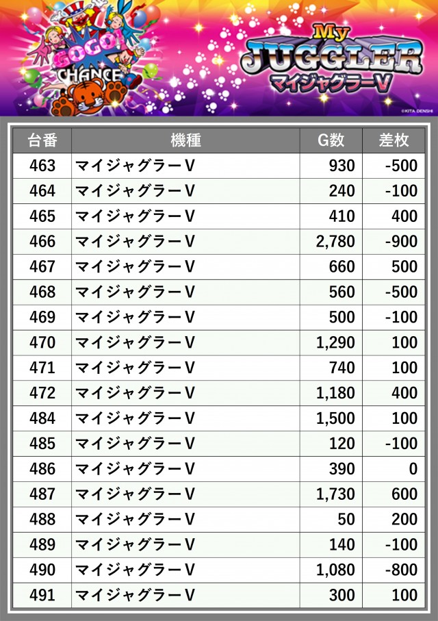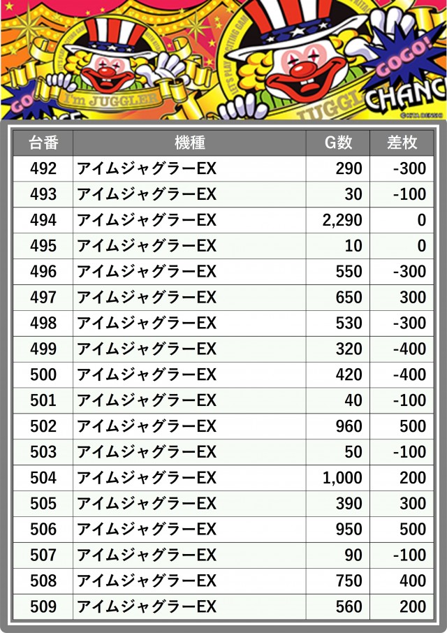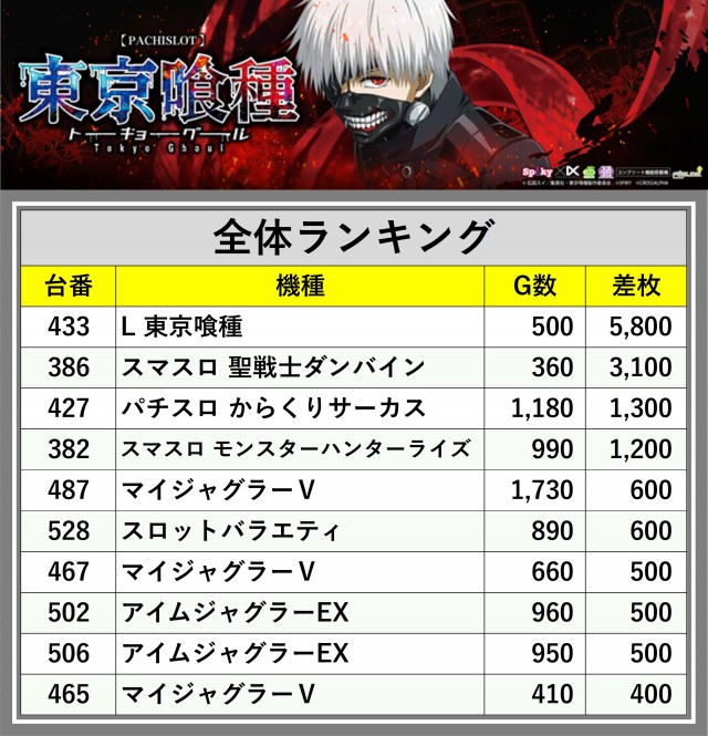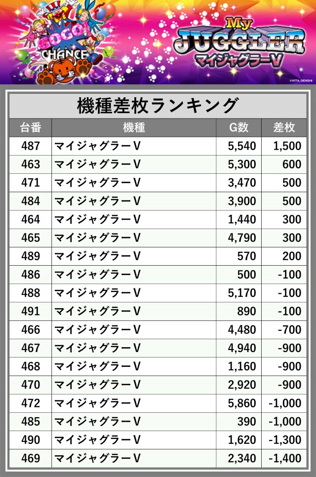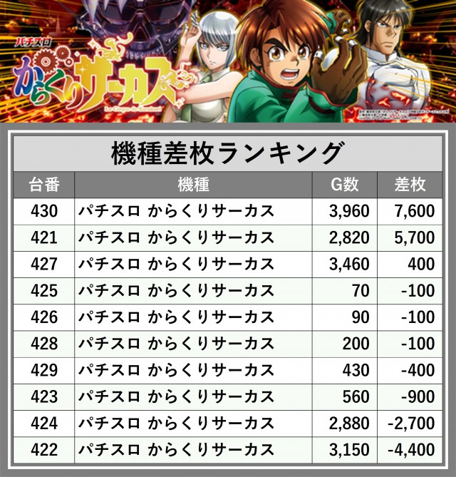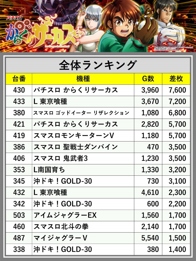 ※差枚数順に掲載しています