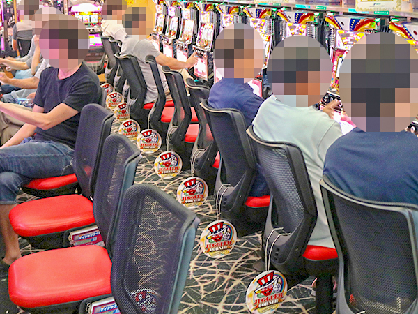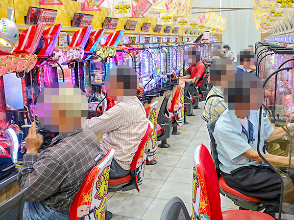 取材時の店内には既に多くのプレイヤーが集結し、パチンコ・パチスロを問わずにぎやかな状況となっていた。