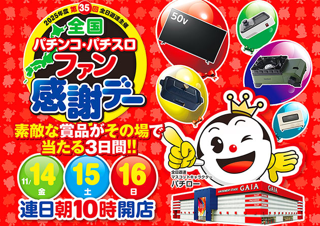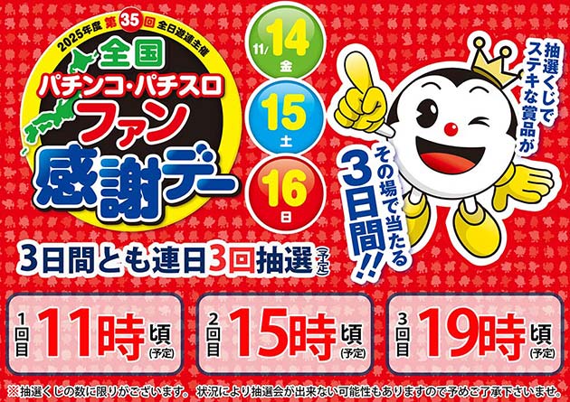 本日11月14日(金)ファン感謝デー初日開催♪10時開店!