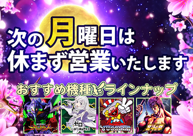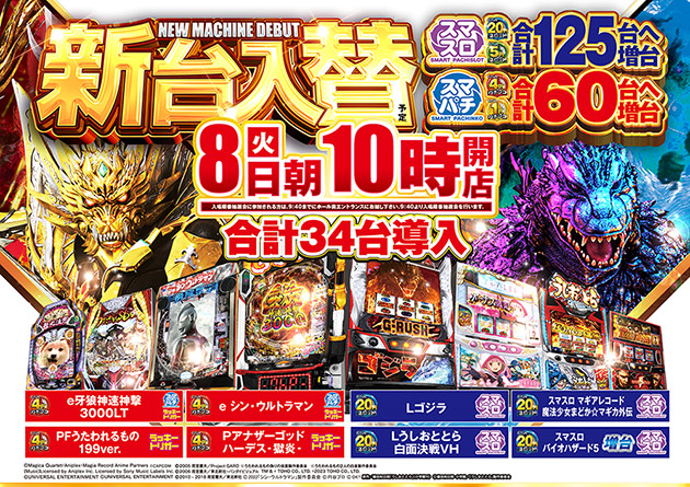 本日4月8日(火)リニューアル&新台入替初日★10時開店★