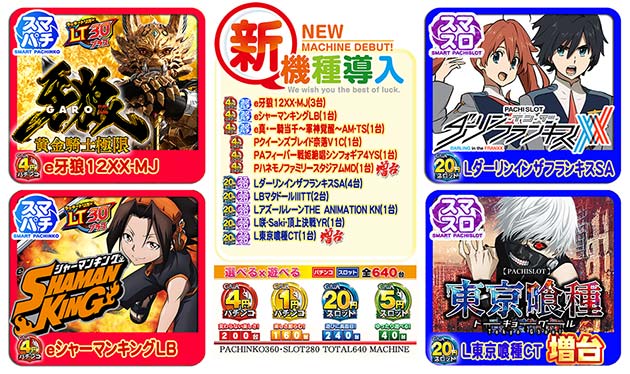 ‘‘最新人気機種‘‘‘‘一挙全16機種導入&増台済み‘‘