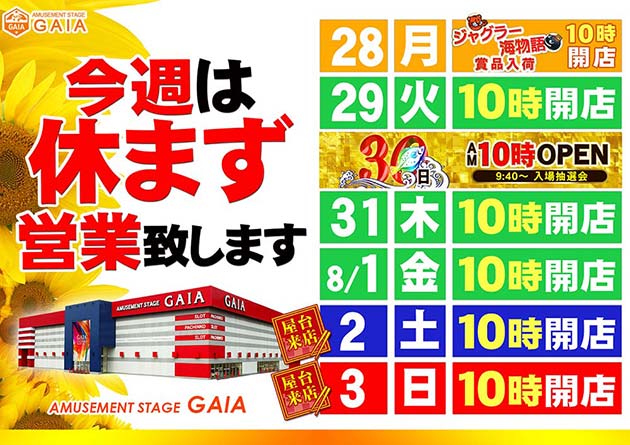 今週は休まず営業!11日祝日もガイアでお楽しみ下さい!