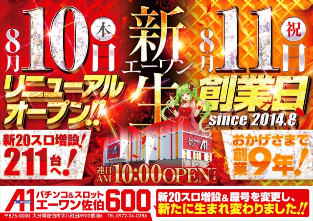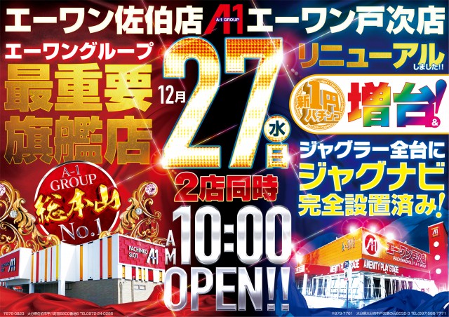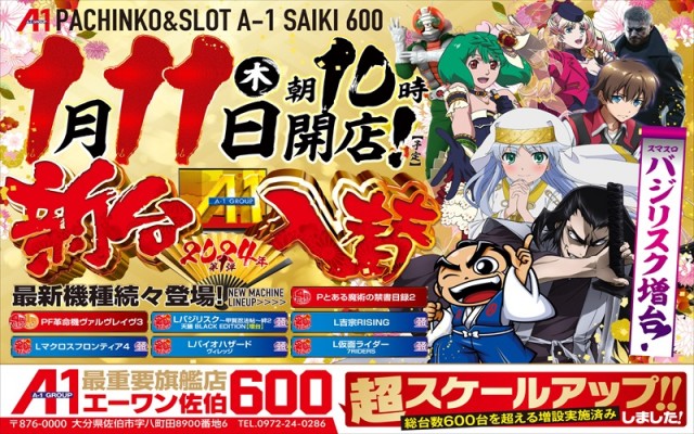 【エーワン佐伯店600】1月11日 新台入替10時OPEN!