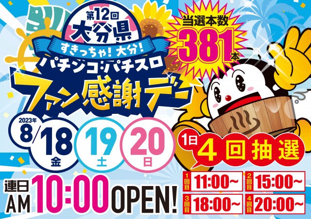 本日8月18日(金)ファン感謝デー!!朝10時オープン!!