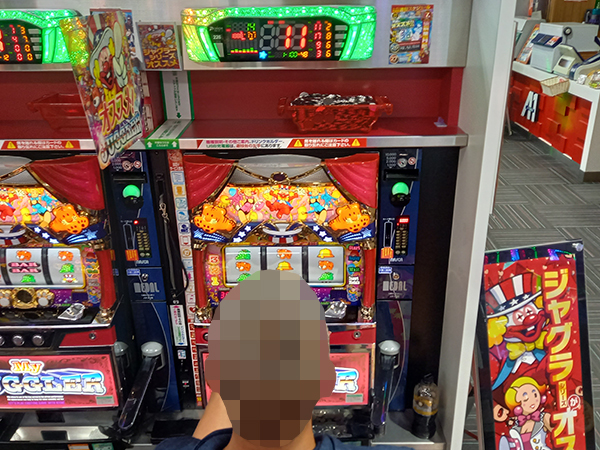 「マイジャグラーⅤ」や「ゴーゴージャグラー3」も活況の様子。機種のポテンシャルを最大限に発揮したプレイヤーを目撃している。