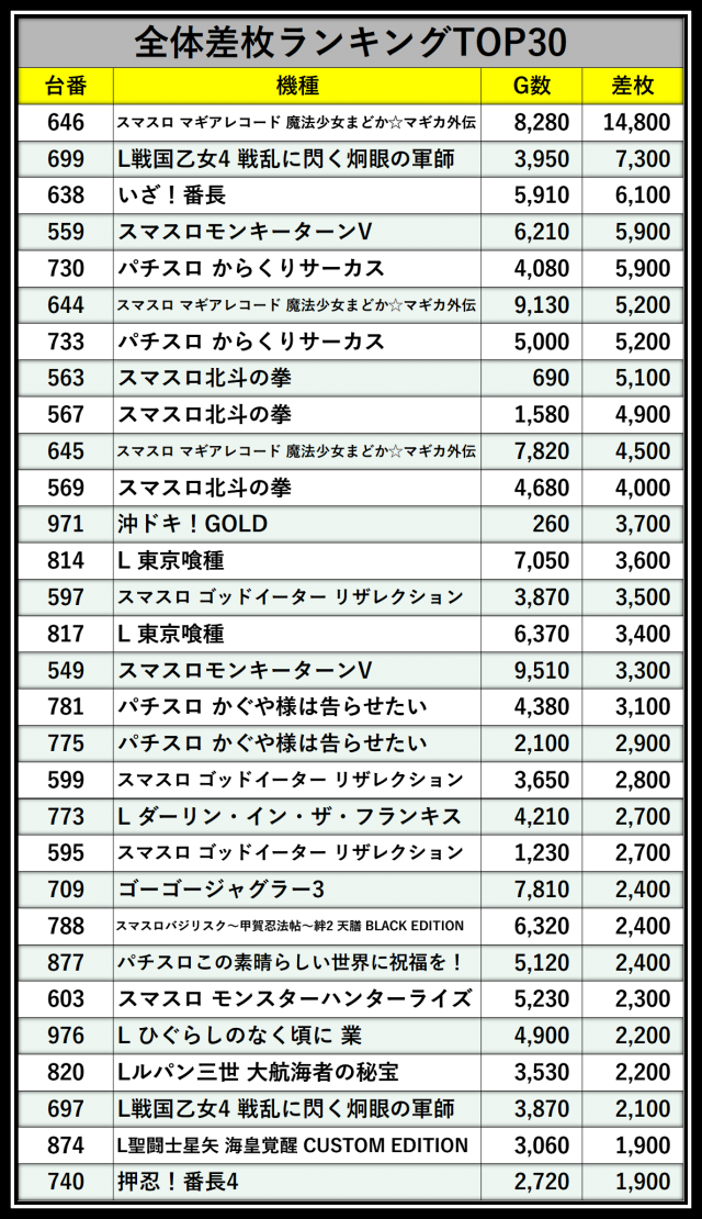 その結果の中から、ぱちタウンが注目すべきポイントを厳選してユーザーにお届け!プレイヤーが楽しんだ一日を下記データにて振り返ってみて欲しい。