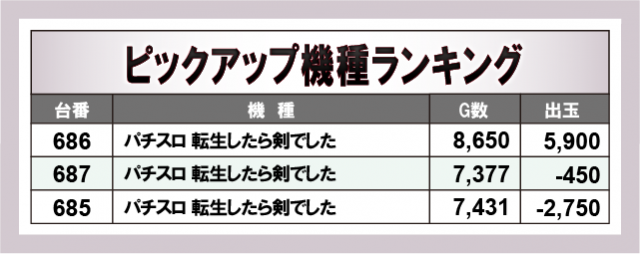 ※出玉数順に掲載しています