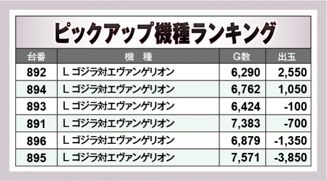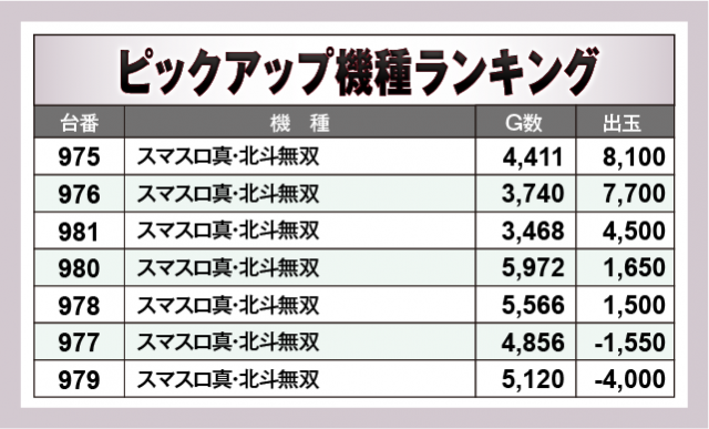 ※出玉数順に掲載しています