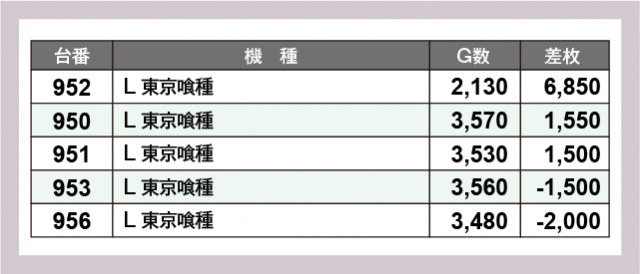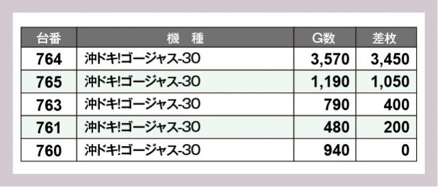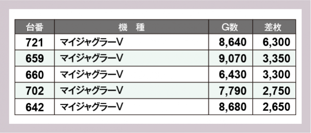※差枚数順に掲載しています