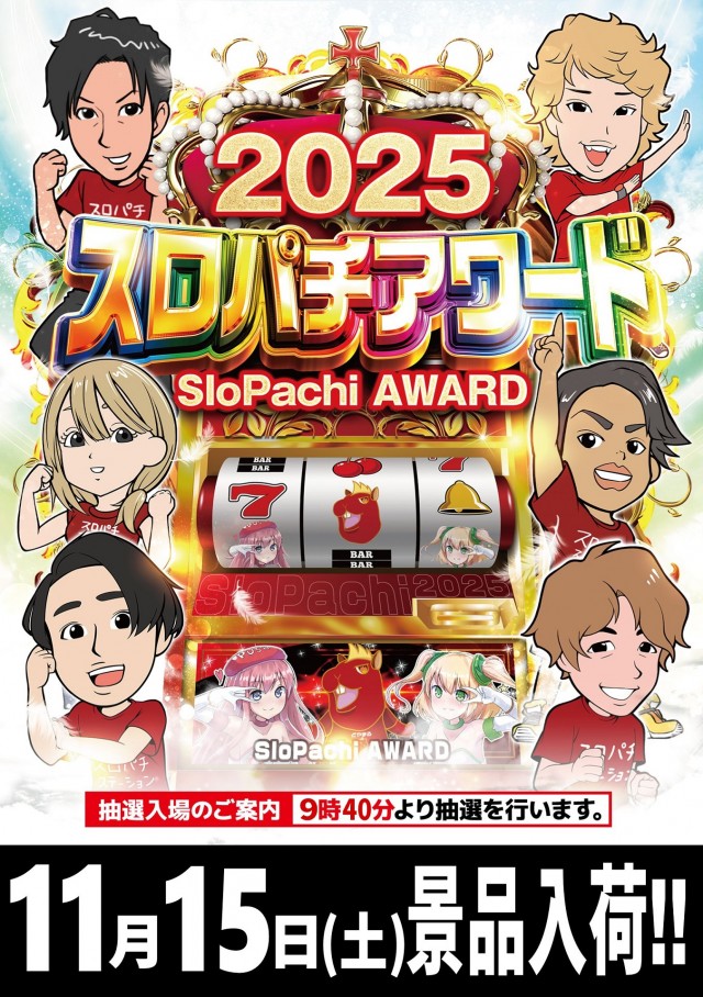 スロパチアワード景品入荷!ファン感謝デー開催中!朝10時開店